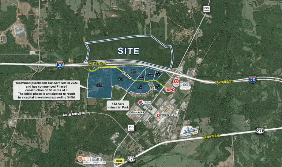 - YellaWood bought 150ac along the South frontage of I-20 & has developed 50ac of it (directly across HWY 20) YellaWood maker to build new facility in Tyler commerce park along I-20 (kltv.com)